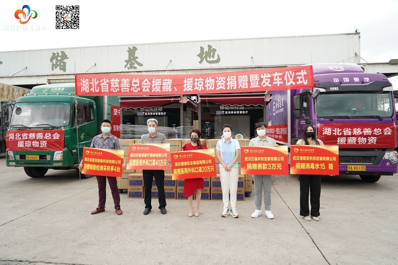 攜手抗疫,同心前行。近期,西藏、海南等地疫情防控形勢嚴峻,深深牽動著湖北人民的心。湖北省慈善總會聞令而動,積極組織捐贈,湖北省內多家愛心企業慷慨解囊、踴躍奉獻愛心,8月31日,裝載價值百萬元的抗疫物資貨車從武漢市東西湖區盛輝物流園出發,分別馳援西藏、海南等地疫情防控工作。