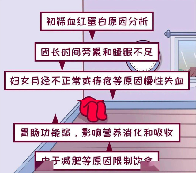長時間的高強度工作,精神壓力,慢性失血,腸胃功能不行。都可能是血紅蛋白不達標的原因。但是這個血紅蛋白不合格,不一定是貧血。隻是暫時不能獻血而已。如果是要了解最準確的情況。就需要進行血液的詳細檢查。血常規、血清等血液方麵的檢查。那麽需要怎麽改善,日常飲食多一些含鐵元素的食品。牛肉、瘦肉、菠菜、橙子等。成年女性鐵攝入量為20mg/日,成年男性攝入量為15mg/日。保障獻血人士的身體健康安全。還有臨床用血的安全。獻血的人每次獻血都需要身體檢查跟血液的血紅蛋白的初篩。避免有不符合獻血要求的血液進入醫療機構。避免身體濃度低的元素獻血者參加。保障愛心獻血人士的身心健康。保障血液的質量,特別是血液製品的血紅蛋白的濃度符合要求。這樣才能達到良好的臨床治療效果。達到救人的目的。