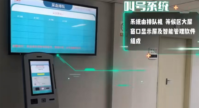 等候區大屏幕窗口,顯示屏和隻能管理軟件組成。病患可以通過身份證、就診卡、手機APP二維碼、社保卡等等方式。掃碼刷卡進入排隊序列,空腹等特殊項目也可以設置個性化彈窗服務。病患根據語音內容到指定窗口采血。排隊規則也可以自定義設置。實現高效人性化排隊機製。