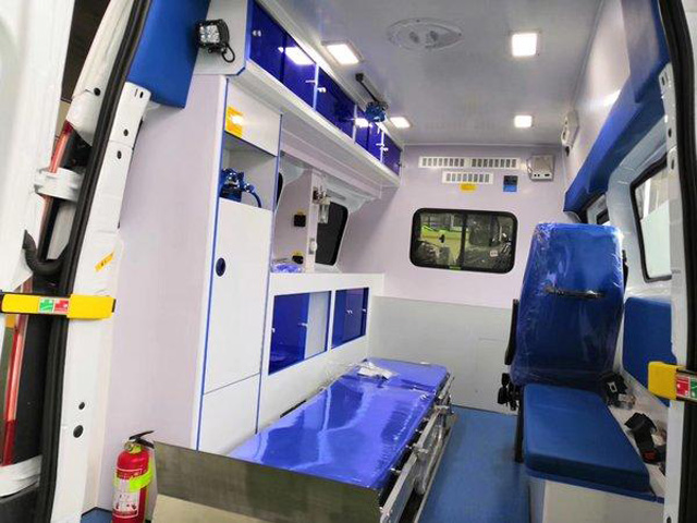 救護車後麵的醫療倉改裝也是根據國家標準執行的。使用環保無毒,防水,防火的符合材料。裏麵有集成供氧係統。醫療器械櫃子。設計都是很合理的。對醫護人員的使用非常方便。救護車的亮度需要更明亮特點。安裝了多盞LED燈。整體布局設計都非常合理實用。相對於普通車輛來看。救護車的要求更好。不然一旦發生事故會危及病人生命。