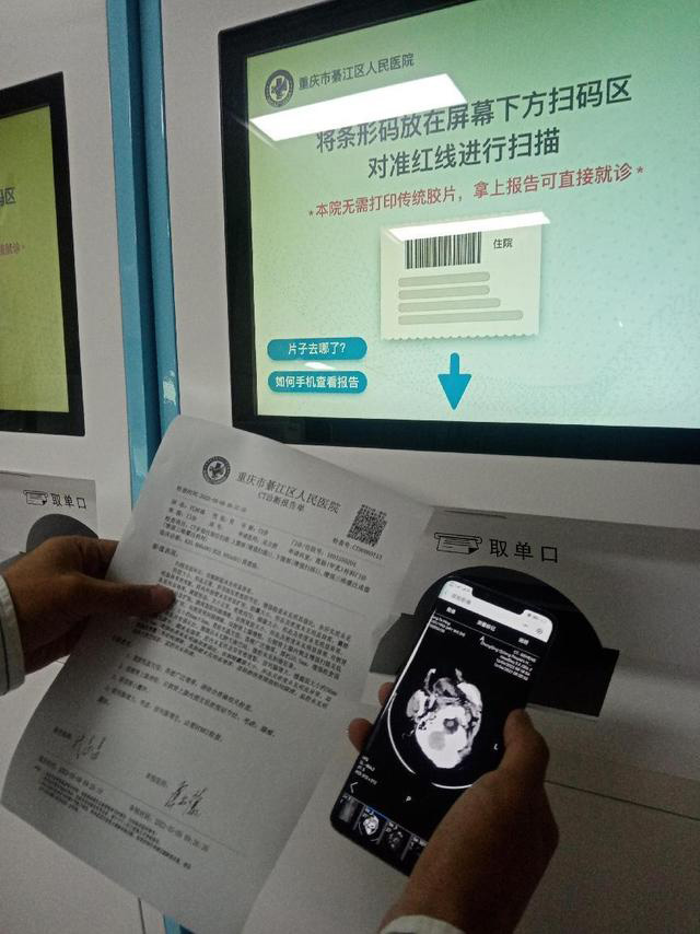 4、膠片和報告怎麽領取?用條形碼,在自助取片機自己領取,膠片和報告一般都是同一個條形碼。