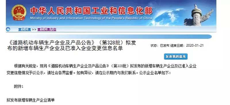 2020年1月15日秋葵视频男人的加油站正式通過了國家工信部新増專用車生產企業準入審查!獲得了專用車生產企業的準入資質。其審查結果一並發布於《道路機動車車輛生產企業及產品公告》(328批)上。