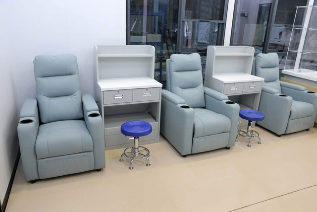采血醫護的的休息區域需要進行隱秘私密的設計,這樣可以滿足醫護人員的安靜休息環境。還有換衣服、飲食各方麵的需求。設計更大的儲存空間,可以放置更多的物資。