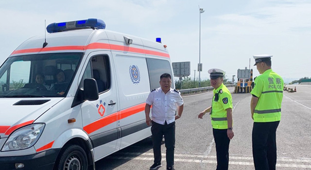 送病人前往醫院的救護車上高速時,院前救助保障機製,保持信息溝通,高速交警支隊開辟“綠色通道”護救護車順暢通行,為搶救傷員贏得寶貴時間。一路上,燈閃爍鳴笛開道,120救護車緊隨其後。最大限度為重病患者縮短路麵上的時間,為這位重病患者開啟了“生命通道”,確保病人得到及時、有效救治。