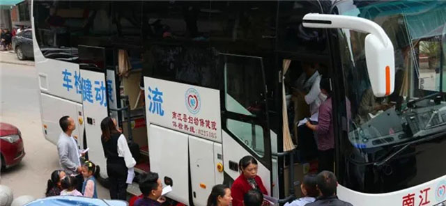 婦幼保健院的體檢車醫護人員上山下鄉,下到社區。為人民群眾開展國家免費婚前醫學檢查與孕前優生健康檢查。原來是群眾自己到醫院進行免費檢查的。為了疫情防控需要,減少人員到醫院聚集避免交叉感染。體檢車上門服務,為提高婚檢率、孕檢率開辟了新路子。體檢車很受歡迎,群眾絡繹不絕地前來,自願接受婚前醫學檢查、孕前優生健康檢查。