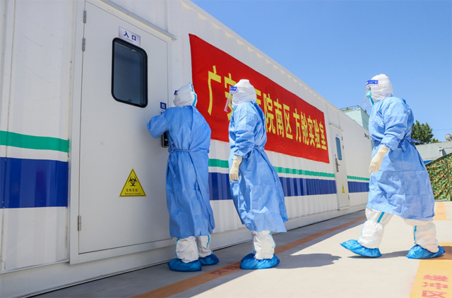 方艙實驗室外形似集裝箱貨櫃,單個艙體占地麵積約40平方米,它雖小,但功能齊全。提高核酸檢測能力,堅決守住來之不易的疫情防控成果方艙實驗室助力疫情防控的重要手段。疫情無情人有情,大範圍的核酸檢測,分秒必爭。檢測人員物資整理、核酸樣本接收排版、數據整理、結果錄入、報告審核,實驗室的檢測人員在距離病毒最近的地方,符合二級生物安全實驗室的要求,整體負壓,準確嚴謹完成每個實驗步驟。方艙實驗室分為四大區域,包括試劑準備、樣本處理、核酸擴增等核酸檢測必備工作區,為配合核酸檢測任務安全有序完成,方艙實驗室運行期間,檢測量很大,確保準確高效的檢測,檢測人員的工作時間很長,平均日工作時間約18個小時。方艙實驗室的啟動運行,緩解各個檢測係統的壓力,靈活作業的特點,爭做核酸檢測質量的壓艙石,嚴格實驗室管理製度,高質量科學檢測,必要時還可突破地域限製,疫情防控保障工作提供了高效有序的運轉。確保核酸檢測工作安全、及時、精準、高效。