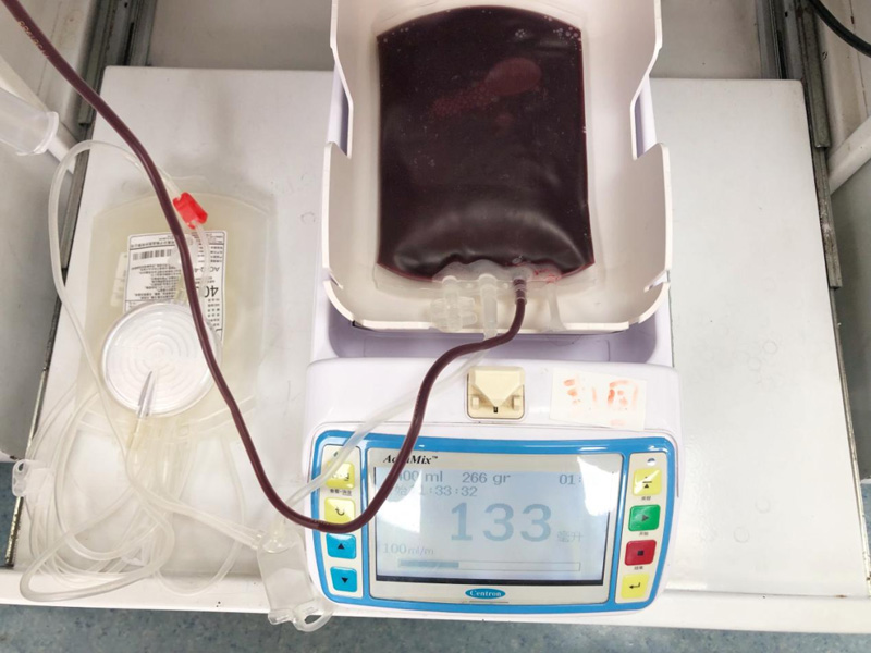 首先獻血時候對血液的初次篩選,采集無名指的血,是因為無名指一是滑液囊不向手掌深部延伸;大拇指跟小指頭的肌腱活動範圍廣,發生感染的話炎症會範圍大。無名指在五指中不如其他手指的的功能大,所以都在無名指上采血。還有采血過程中,獻血屋的工作人員會在手臂位置綁著一條白色的帶子。這個叫壓脈帶,一次性止血帶。采血過程中一直綁著壓脈帶是有助於減緩血液回流心髒的速度,采血得到順暢效果。獻血時候血袋在采血稱上麵不停的搖擺,是因為血袋裏有抗凝劑。采血時候如果不用這個措施血液會發生凝固效果,采血稱一定頻率不停搖擺,使抗凝劑與血液充分混合,從而達到使血液不凝固的目的。還有在采血過程中還有三個試管。采集好的血液會送往血站的成分供儲科進行分離製備,為最大程度確保每一袋血液是安全的,而試管則會被送到成分檢測科進行血液檢測。血站要對所有采集回來的血液標本進行丙氨酸氨基轉移酶(ALT)、血型檢測、乙型肝炎病毒、丙型肝炎病毒、獲得性人類免疫缺陷病毒(HIV)、梅毒螺旋體檢測。每個血袋都有條形碼,標識以及可追溯性。同一獻血碼至少在50年內不得重複。