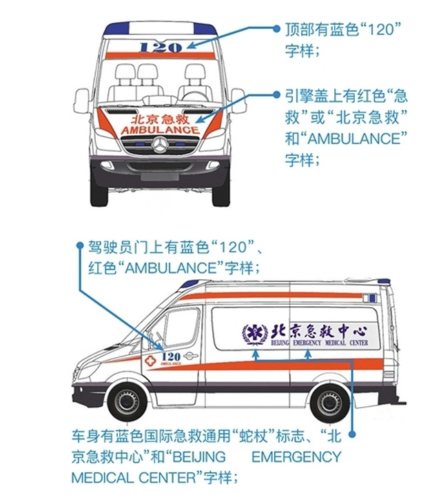正規真的救護車:正規120急救車上均裝備有先進的GPS衛星定位係統,便攜式吸引器、車載電話、急救箱、氧氣袋、氧氣瓶、簡易呼吸器、骨折固定器材、軟擔架、普通型擔架、血糖儀、心電圖機、氣管插管包等,部分搶救型救護車上還特別裝備了心電監護除顫儀、電動吸引器、氣動力型呼吸機等完備的醫療急救設備。這樣的配置價值都在100多萬元左右。正規醫院的救護車分別在車輛的前麵,後麵,左右兩麵都有120,救護車的字樣,和所屬單位的名稱,急救AMBULANCE等等標誌標識。救護車上的人員都統一正規著裝。完成急救任務後,應出具車載計價器的收費清單,印有藍色字樣,明細包括單位、電話、車號、日期、時間、單價、裏程等11項內容。