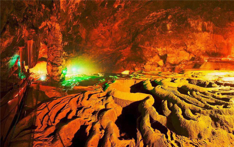 進入黃仙洞後,隻見洞內奇石異景、百態紛呈,特別是2萬平米的邊石池、形似梯田,是黃仙洞最具特色的地方,大家被眼前的景觀深深吸引,情不自禁折服於大自然的鬼斧神工。
